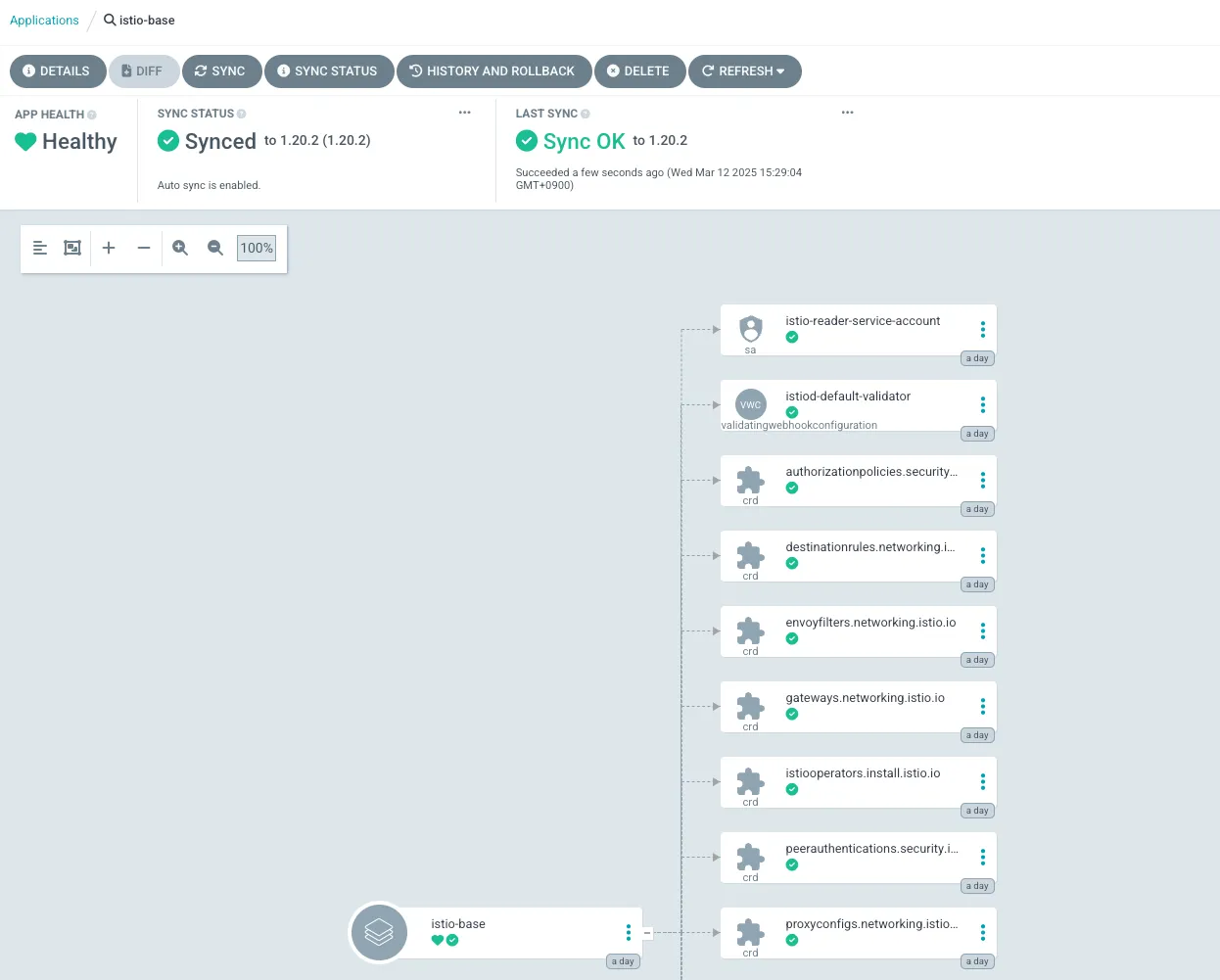 따라서 istio의 out of sync를 해결하기 위해서는 아래와 같이 ignoreDifferences 필드를 이용해 해당 설정의 차이를 무시하도록 구성하면 된다.