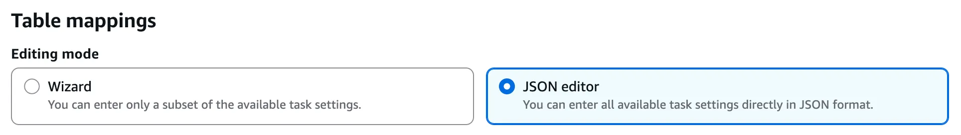 - Migration type: Migrate existing data (데이터 full load만 진행하고 CDC는 하지 않겠다는 옵션)