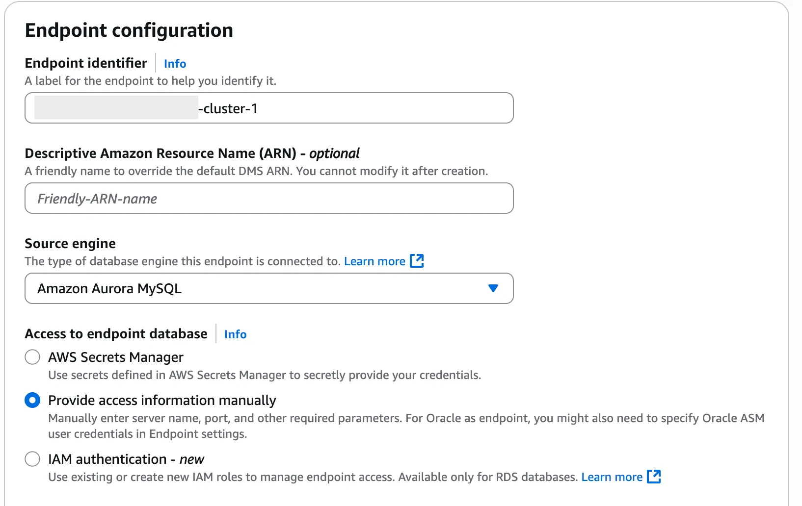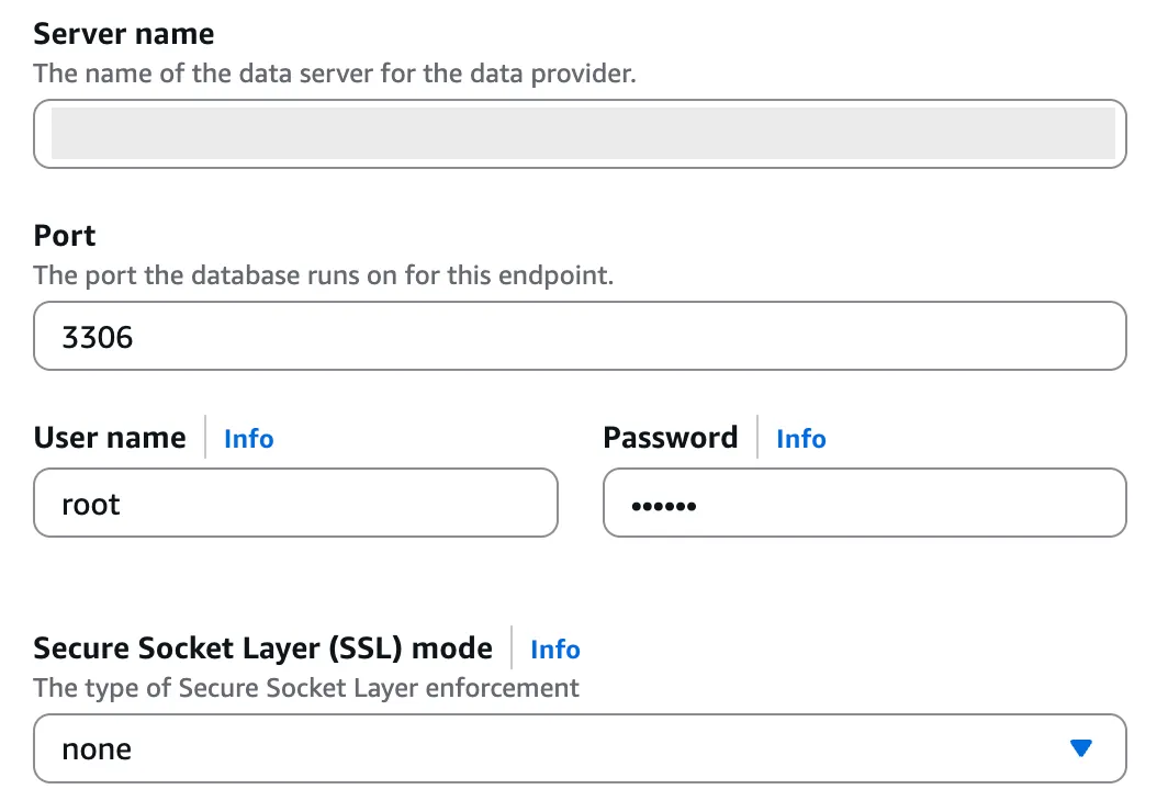 - Source DB Endpoint: 위에서 생성한 endpoint