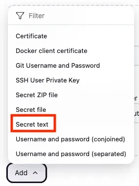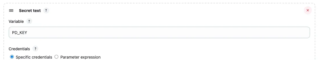 Variable에 PD_KEY 를 입력하고, 위에서 설정한 Credential을 드롭다운에서 선택한다.