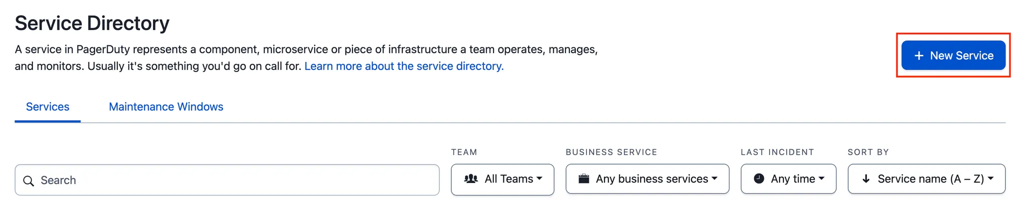 3. 이제 PagerDuty 콘솔로 이동해 Services > Service Directory에 접근한다.