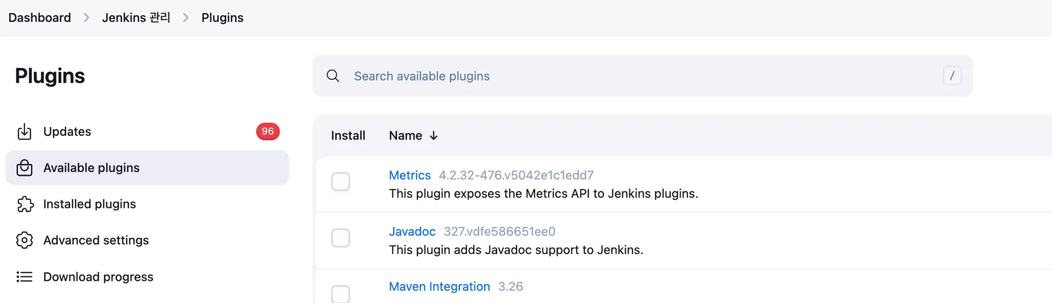 1. Jenkins에서 PagerDuty 알림을 설정하려면 먼저 PagerDuty 플러그인을 설치해야한다. Jenkins에서 Jenkins 관리 > Plugins > Available plugins를 클릭하고, pagerduty를 검색해 다운로드 받는다.