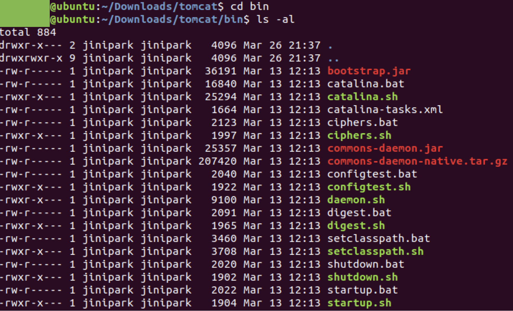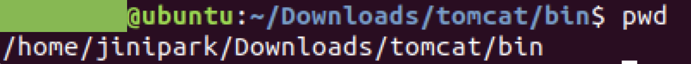 5. cd 명령어를 통해 tomcat 디렉토리의 bin 폴더로 이동한다.