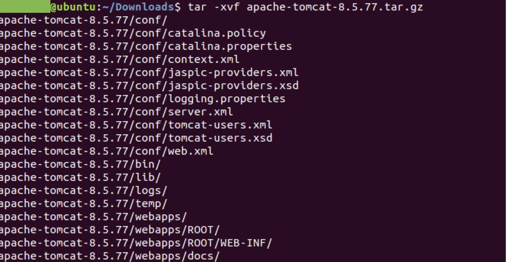2. 'tar -xvf apache-tomcat-8.5.77.tar.gz' 명령어로 압축을 푼다.