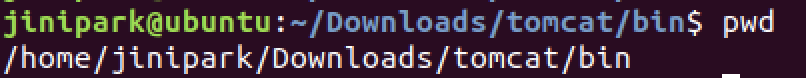 5. setenv.sh 파일을 작성하기 위해 tomcat 디렉터리의 경로를 확인한다.