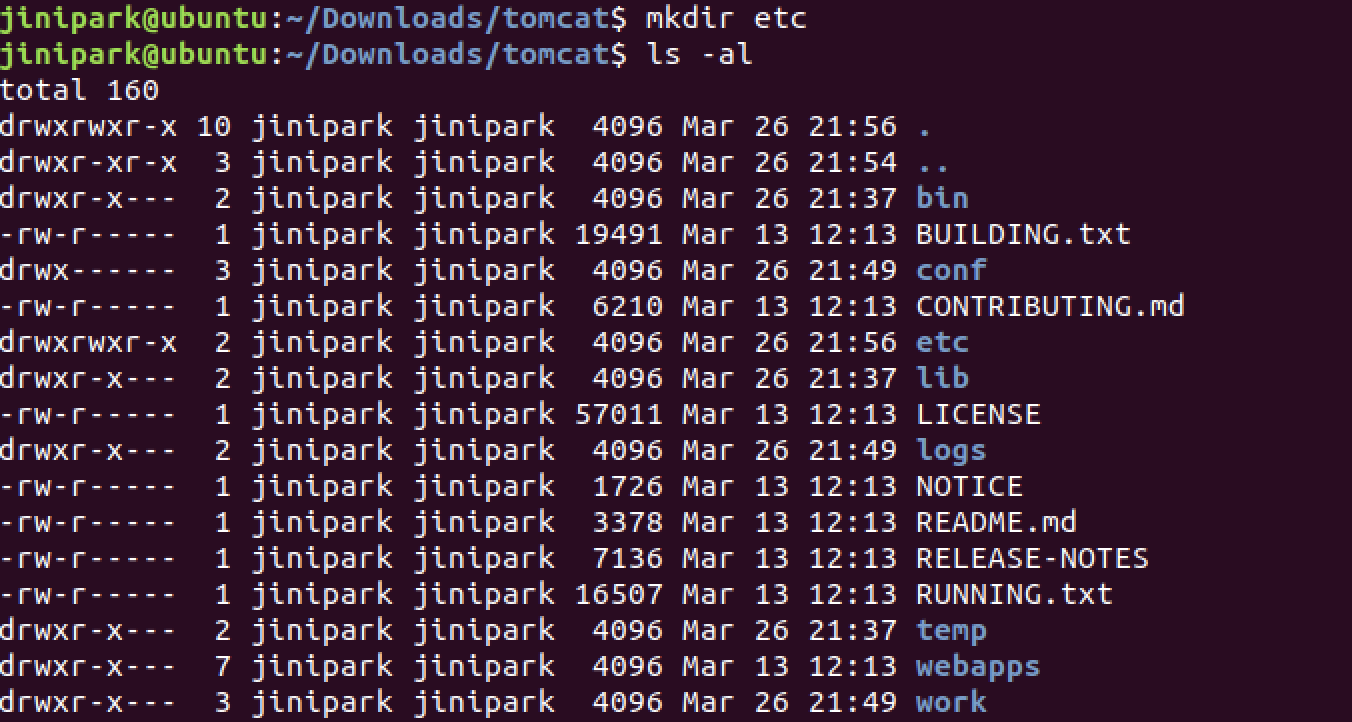 2. javaagent 파일을 저장하기 위한 etc 디렉터리를 tomcat 디렉터리 하위에 생성한다.