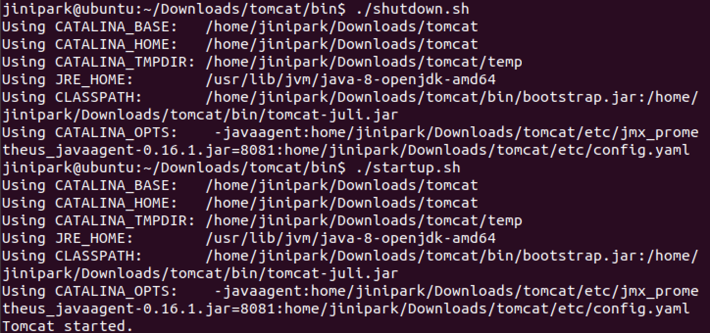 ※ tomcat 추가설정을 위해서는 catalina.sh 대신 setenv.sh 파일에 옵션 값들을 추가해주면 된다.