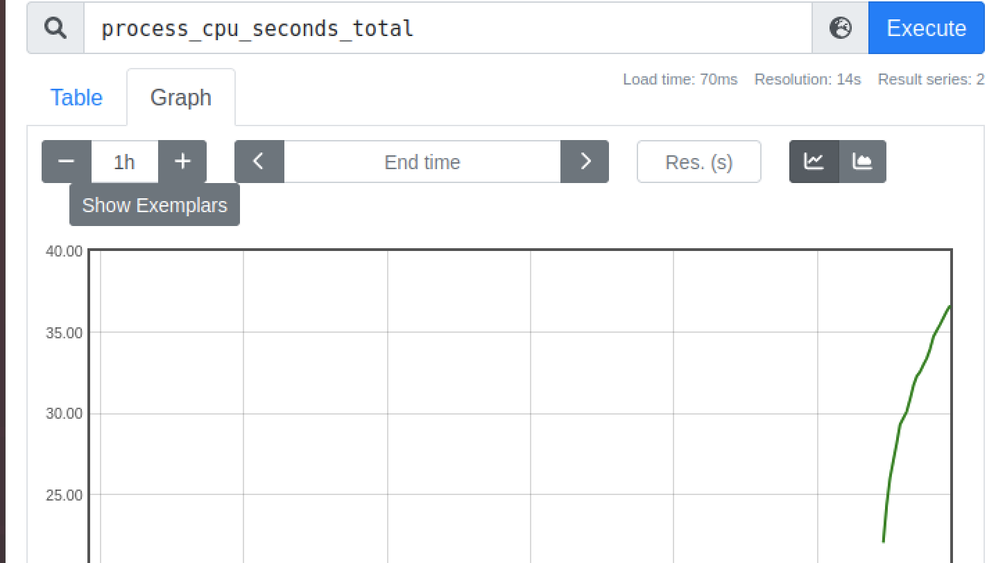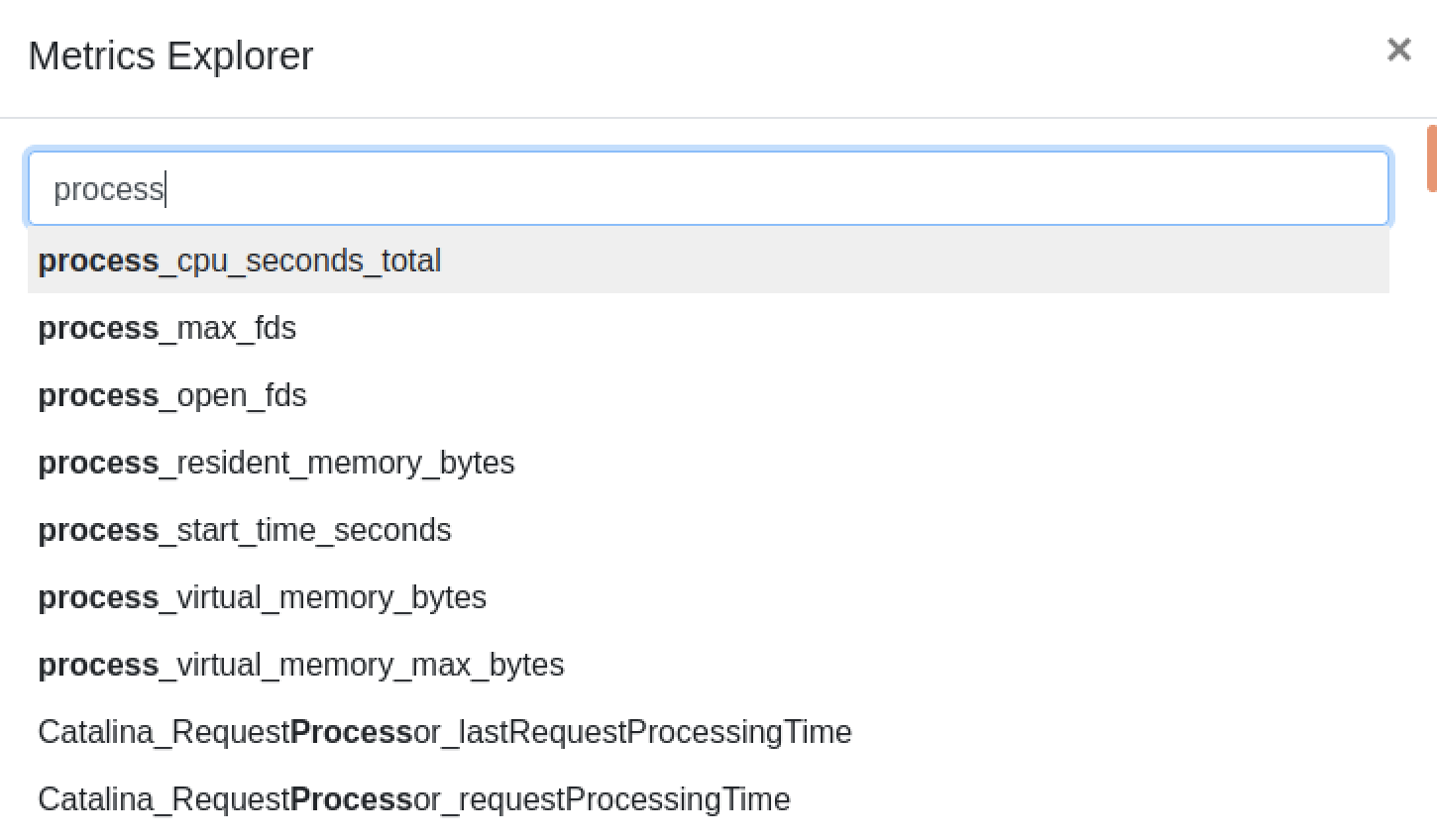 9. JMX-exporter 와의 연동 확인(2) Metrics Explorer 드롭다운에서 'process_cpu_seconds_total'를 선택한다.