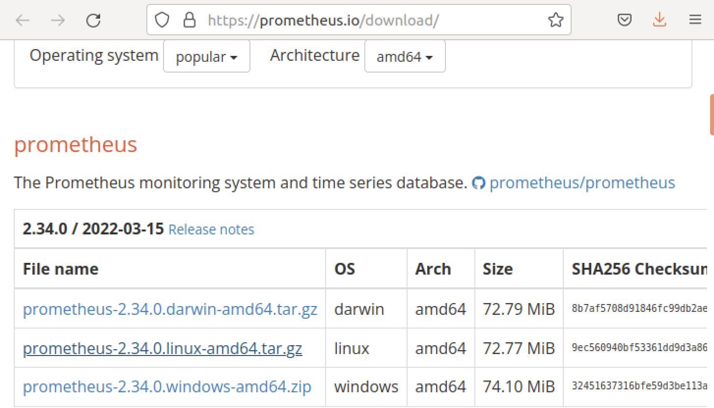 1. Prometheus 공식 웹사이트(prometheus.io/download)에서 linux 버전 압축파일을 다운로드한다.