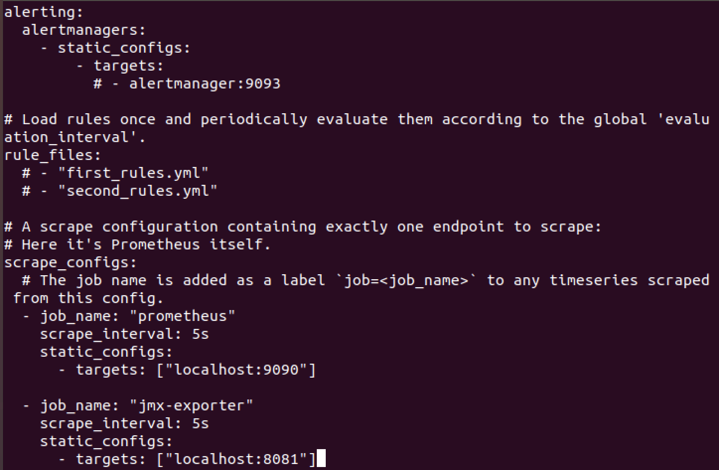 5. prometheus.yml 파일에 “jmx-exporter” job 내용을 새로 추가한다.